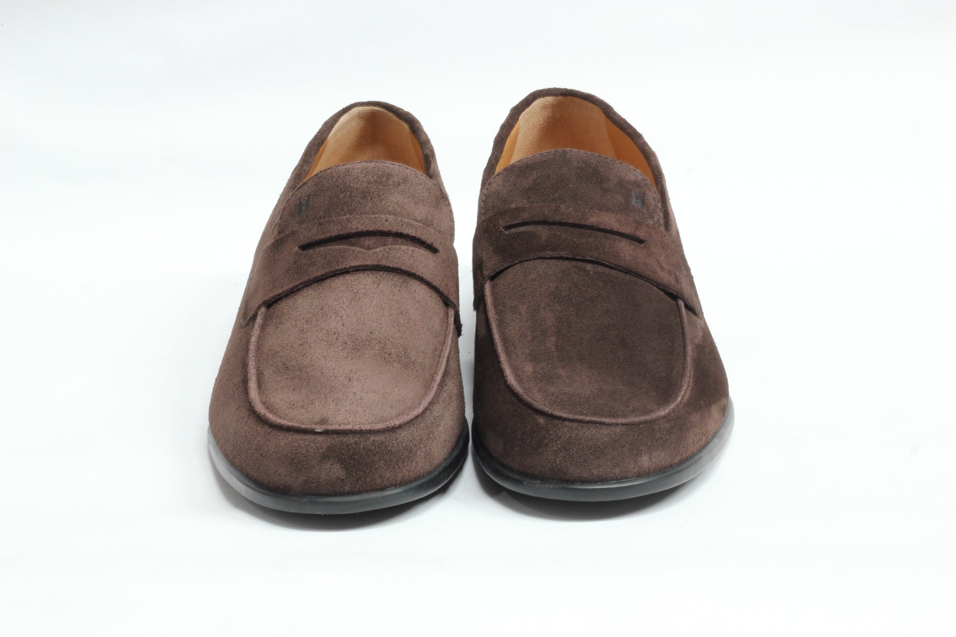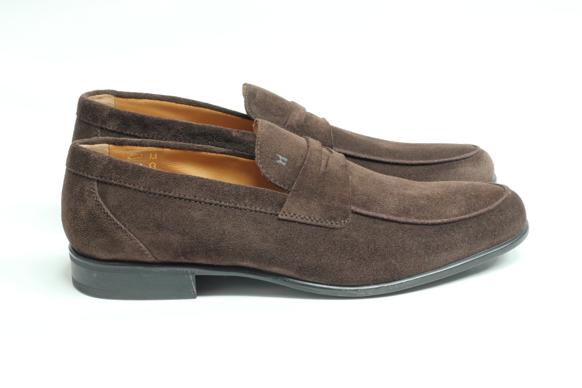 These Moreschi brown suede leather loafers are a classic model with a clean shape featuring a leather sole with rubber.